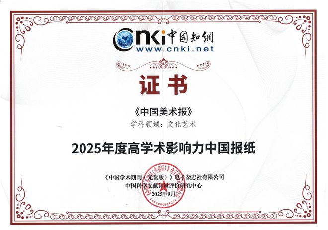 《中国美术报》入选中国知网“2025年度高学术影响力中国报纸”