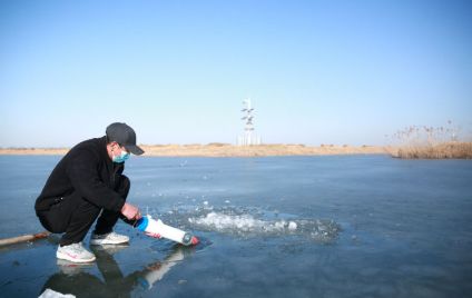 此外,还有的捕鱼人在冰面上每间隔两米左右就凿出一个洞,沿着直线凿出八九个洞后,通过冰洞下网。等候一个多小时后,捕鱼人把冰洞的渔网提起来,可以捕到不少活蹦乱跳的鱼,鱼放进跟前的水桶后,使劲甩一下渔网,重新放入冰洞口,接着轮到下一个冰洞口收网。这样一上午,捕鱼人每次都能收获三到五公斤鱼。他们不光是为了卖鱼,而是在冬天里图个乐趣。