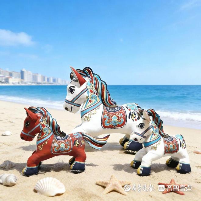 此次获奖的五花马生肖布艺,是胶东版画烟台市级非遗代表性传承人朱武学的匠心之作。作品精准还原唐马颈长臀圆、鬃毛飘逸的典型体态,延续了盛唐艺术“雄强遒劲”的审美特质,既再现了《照夜白图》中骏马的昂扬气韵,又融入李白“五花马,千金裘”的诗圣意境,将“马到成功”“龙马精神”的吉祥寓意与“盛世骏骥”“骏马迎春”的节庆氛围完美融合,成为传承中华生肖文化的生动载体。