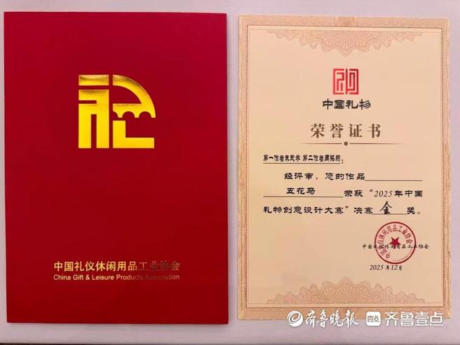 1月6日,从烟台高新区获悉,近日,由中国礼仪休闲用品工业协会举办的2025年“中国礼物”创意设计大赛决赛评审结果揭晓,烟台高新区企业烟台民生印花艺品有限公司选送的“五花马”生肖布艺产品,凭借深厚的文化底蕴、精湛的非遗工艺与创新的设计理念,在全国数千件参赛作品中脱颖而出,成功斩获金奖并入选“中国礼物”推荐名录,成为兼具非遗传承与国潮品牌的文创精品。