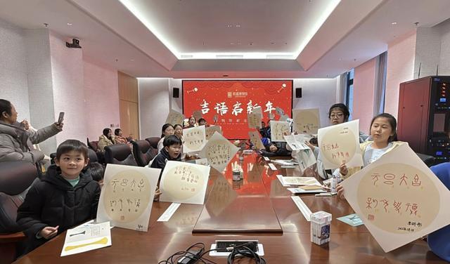 殷墟博物馆的“吉语启新年”活动,社教老师教孩子书写甲骨文吉语,绘出国宝文物,以最古老的方式表达新年祈愿。