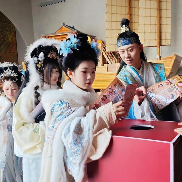 游客手持集章护照,在探寻文物奥秘的旅程中,收集专属印记,最终兑换成一张满载祝福的明信片,投入“时光邮箱”,预约一份来自未来的惊喜。