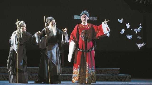 女老生石惠兰曾在《五女拜寿》中精彩地演绎过由悲转喜的老大臣,张元秀的人生轨迹刚好相反,是由喜转悲。开头路上捡到弃婴喜出望外,当心头肉收养;十二年后孩子问老爹生世,又刚好撞见生母,不得已儿归原母;过几年孩子长大“成功”,却活活气死了养父母。这部越剧主要是石惠兰的唱功戏,唱了十四段,被不孝子气死前那一大段带着颤音的唱,“妈妈啊,苍天爷爷眼似电,自有公道在人间。你灵魂千万莫走远,我这里随你上青天”赚足了观众的眼泪。演成年张继保的女小生徐铭是梅花奖得主,虽只有最后半个多小时的戏,也有五段唱。这位配角以不到三分之一的戏份、坏儿子的角色,与老好人大男主大飙演技,高潮时双双出彩,势均力敌地达到高峰体验,个中奥妙颇值玩味。结局的舞台呈现特别动人,编、导、演的配合堪称完美。编剧爱憎分明地写了个坏儿子——像《美狄亚》中那个负心汉,但中国观众不会同意让人渣溜走,于是导演在父子大段唱结束后换上个特技演员,专演哑口无言被雷劈死的坏儿子,用一段武戏来为这部唱功戏打上独特的句号。