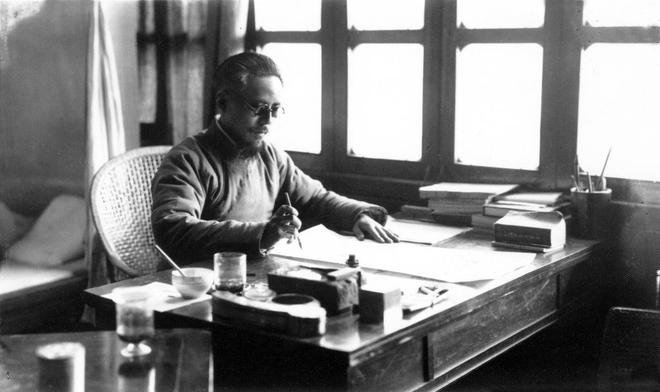 1937年在缘缘堂二楼书房,丰子恺作画