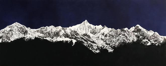 周尊城介绍,他生在东北长在东北,从小就对雪有特殊的情感。成为画家后,故乡的雪景成为他创作的源泉。此后,他又将视线聚焦到雪域高原,和团队多次深入西藏、四川等地采风,将对自然的敬畏与人生感悟凝于笔端,“尽管每次去雪山都会有高原反应,但我希望用我的笔,绘出冰山雪水撼人心魄的美,也想通过画展呼吁大家关爱我们的美好家园。”