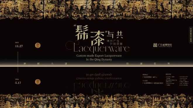 “髹漆与共——清代广作外销漆器”海报及广州博物馆馆藏“蕃禺”漆盒展出照片