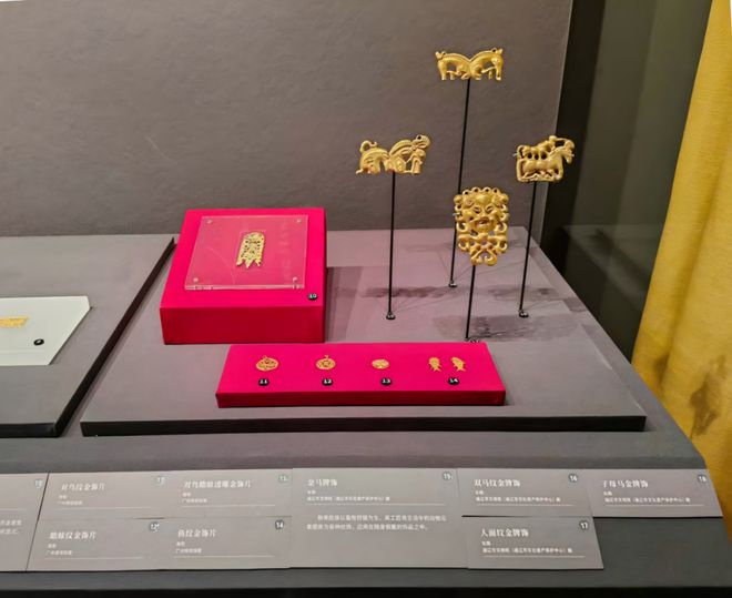 广州博物馆参展文物展出照片及广州博物馆馆藏南朝鱼形金饰片