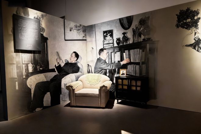 “信芳”厅以“勇气”为视角,呈现周信芳辉煌的戏剧生涯、艺术观念及其作为“时代之声”的创作实践。“士楚”厅则以“拥抱”为关键词,展现大师台下的人生,揭示其艺术中真挚浓烈的情感来源——对生活、家人、朋友及观众的深切热爱与关怀。