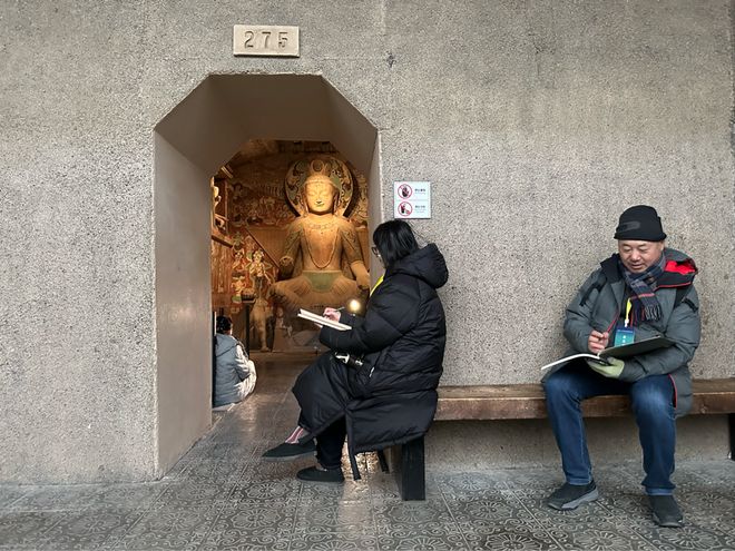 在敦煌石窟文物保护研究陈列中心写生现场