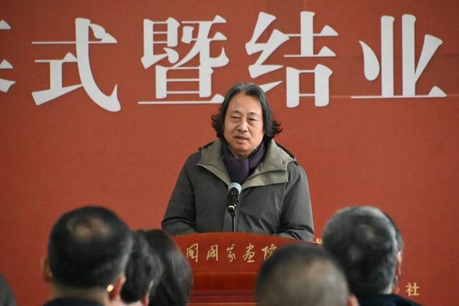 刘万鸣表示,文化和旅游部“全国画院中青年创作骨干培养计划”已延续十余年,从2012年人物、山水高级研修班到“十三五”“十四五”系列计划,始终坚守人才培养初心,本次结业展既是“十四五”培养成果的检阅,更是“十五五”人才建设的序章。中国国家画院将继续推进人才培养制度化、规范化,培育兼具理想、创作力、理论素养与思考能力的美术人才。他强调,中青年创作者需坚守主题创作初心,心怀“国之大者”,传承“山水含情、花鸟寓意、人物传神”的传统艺术追求,以作品彰显时代精神;要深耕生活沃土,摒弃浮躁,让创作源于生活并高于生活;应全面提升综合素养,锤炼技能、筑牢理论功底,赋予作品思想深度与文化内涵;需借画院平台传承老艺术家德艺双馨之风,与各地同仁交流互鉴。最后,他祝愿学员艺术之路愈发宽广,为中国美术事业繁荣与文化强国建设添砖加瓦。