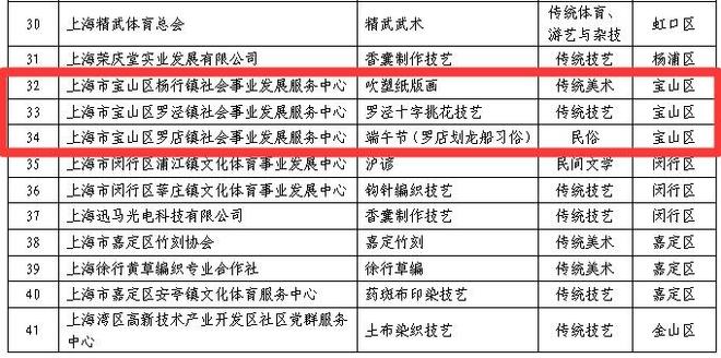 在本轮非遗评估结果中,宝山区杨行镇社会事业发展服务中心、宝山区罗泾镇社会事业发展服务中心、宝山区罗店镇社会事业发展服务中心三家非遗保护单位荣获优秀,华雯、龚赣弟两位传承人荣获优秀!
