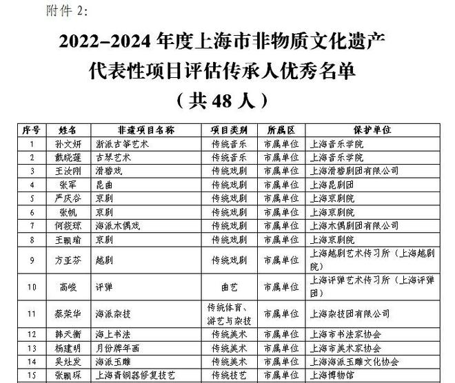 为加强本市非物质文化遗产保护工作管理,提升上海市非物质文化遗产代表性项目保护工作绩效,根据《上海市市级非物质文化遗产代表性项目保护情况评估管理办法》有关规定,2025年市文化旅游局开展了2022—2024年度上海市非物质文化遗产代表性项目保护情况评估工作,对428家第一至第七批市级项目保护单位和531名健在的第一至第六批市级非遗代表性传承人和第六批国家级非遗代表性传承人进行了评估。
