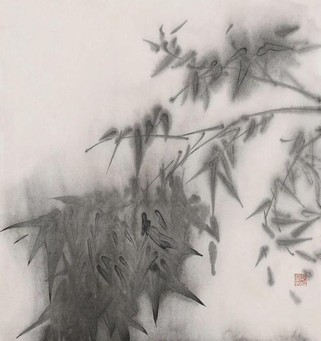 她以文人写意之笔,将竹的品格升华为一种内在的精神图式。它不争不显,却自有其风骨;不喧不躁,却足以撑起一方天地。竹叶轻颤,仿佛在回应着“一蓑烟雨任平生”的豁达,亦如苏轼泛舟赤壁,看尽人生浮沉后,仍能笑对风雨。