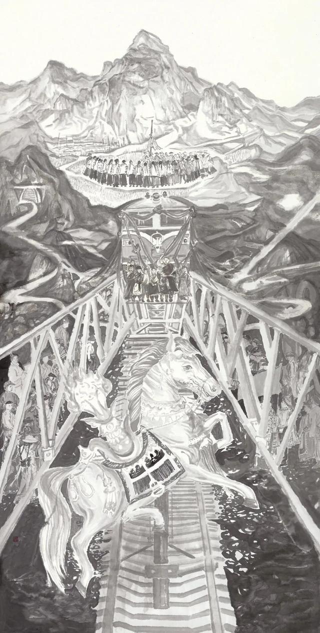 另一方面我努力探索山水画主题的拓展。2018年至今我画了一系列主题创作。试着打破山水画惯有的题材限制与元素界定。画面融入了当下生产生活的重大成果,以期从主题视角到笔墨语言推进山水画的当代性,强化山水画作品的时代面貌与生命活力。