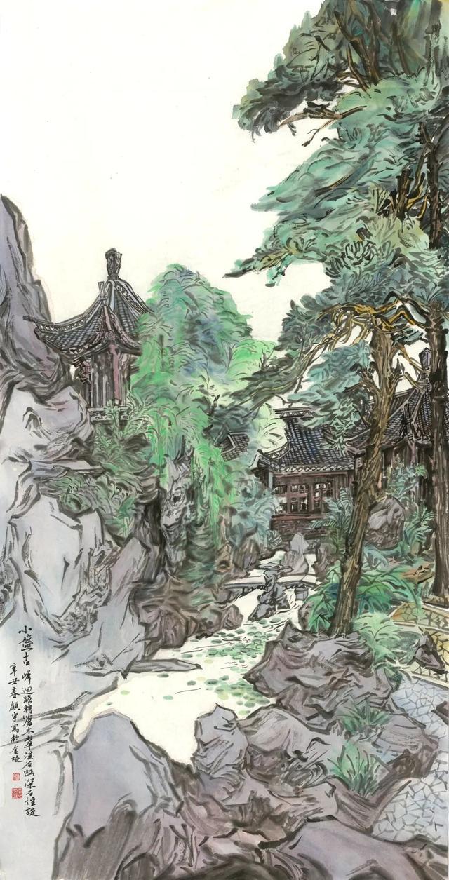 近些年我一方面坚持深入生活写真山真水,以写生获得创作的素材来源,画有感受,有生命力,有灵魂的山水画。我的青绿山水画作品如《雁荡胜景》《二十四节气》系列作品都坚持放笔直写,写真山意趣。努力将四时朝暮、风雨明晦、丰富广博的自然气息活脱脱地呈现在观众面前。试图给人带来身临其境,可游可居,清新愉悦,舒朗旷达的精神感受。