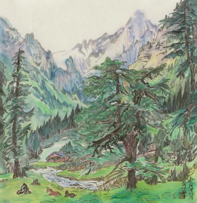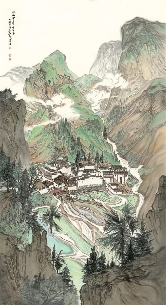 经由上篇的尘世历练,旅程导向“出世的观照”。第二板块“丹青流彩”,是精神的深呼吸,是心灵向自然苍穹的彻底敞开。步入此板块,则由“渡”至“归”。近年来我不断转向青绿山水的传统脉络,以饱含生命力的色彩与充满写生感的笔触,表现自然的博大与神圣。作品超越形似,直追物象背后的生机与律动,营造“天人合一”的化境。这是对古老画学精神的当代回应,更是穿越自然之“象”后,对永恒与和谐之“真”的虔诚回归。