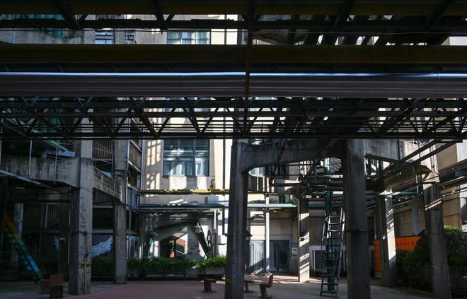 当时最大的感触就是苏联援建时期的工厂风格非常明显,刘家琨的改造没有过度干扰建筑的原有气质。在给排水、强弱电等隐蔽工程根据现代商业需求进行专项改造的同时,园区工厂的整体痕迹得到了很好的保护,甚至大量的已报废的工厂生产设备被改造成水池、雕塑或舞台背景,园区特有的工业气质进一步提升。