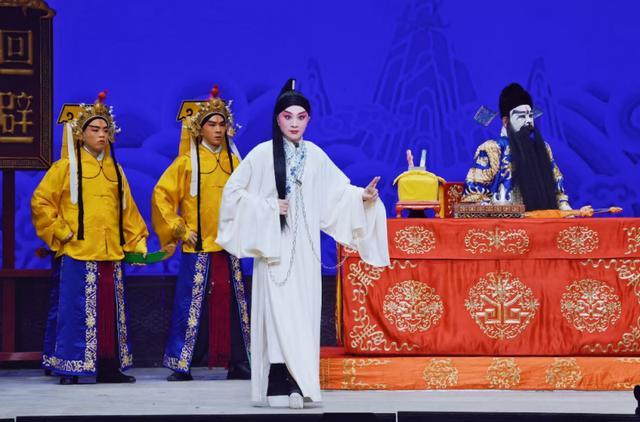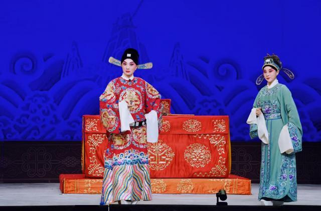 开场闷帘一声“来了”便收获碰头彩,身着巡按红蟒官服的亮相英气勃发,完美诠释了正义化身的形象。“头公堂”一折中,堂审武宏的大段念白刚劲有力、张弛有度,将谢瑶环不畏权奸的凛然正气展现得淋漓尽致;“花园”一场则尽显女儿家的娇羞柔情,“谢瑶环深宫九年整”的南梆子唱腔婉转旖旎,配合遮面团扇的细腻身段与小圆场走位,将与袁行健的情意绵绵刻画得美不胜收,与小生演员刘明哲的默契配合赢得满堂喝彩。全剧戏核“二公堂”一折,路洁以扎实功底驾驭唱做并重的表演,受刑后的甩发技巧与踉跄步伐,生动展现了谢瑶环身受酷刑却刚毅不屈的精神。“正是你狗奸贼通敌谋反”则借鉴小生唱法,字字珠玑、铿锵有力,痛斥奸佞罪行的表演令人叫绝。