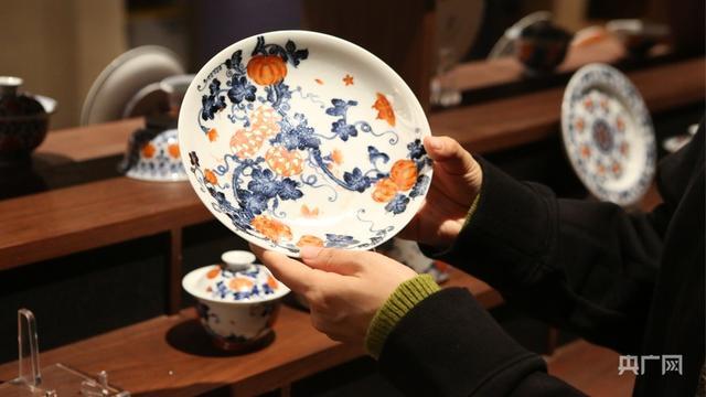 墨墨在当代民窑艺术馆讲解新型工艺烧制而成瓷盘(央广网见习记者尹博 摄)