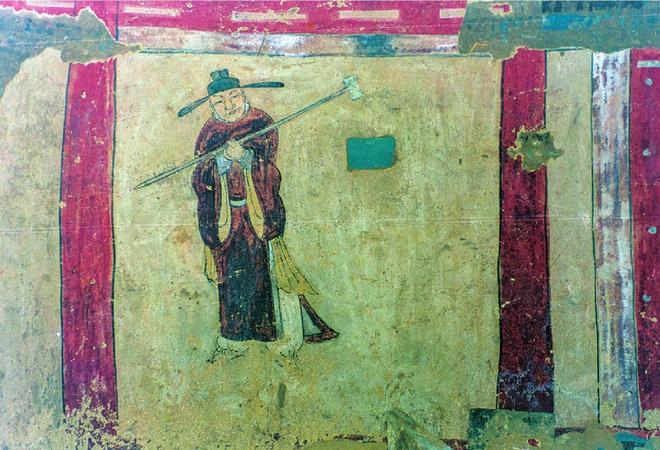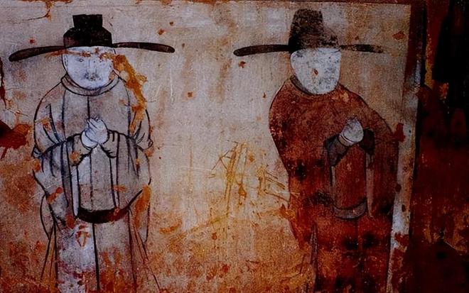 ▲后周顺陵甬道东壁文吏迎侍图,图源:网络