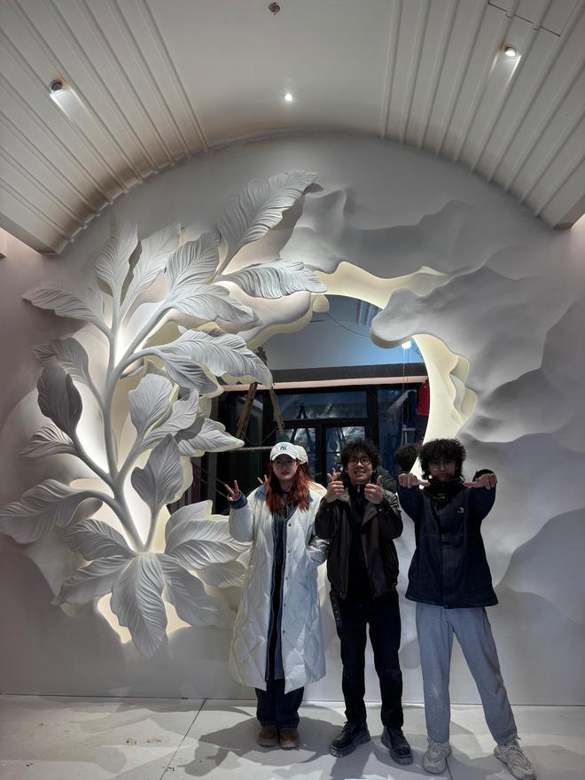 2021年,郭梦涛刷到一些视频,发现国外有不少浮雕壁画,不同于国内的浅浮雕,这种浮雕立体感更强,内容也更为现代化。虽然没去国外看过这些浮雕壁画,但他们意识到,这是一个很有潜力的市场。“我们当时已经掌握了雕塑和彩绘,综合一下就可以开拓市场。”郭梦涛。