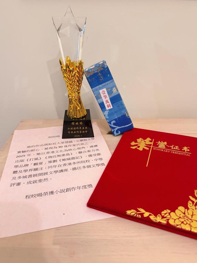 1月25日,在香港女作家协会举办的2025年度创作奖颁奖典礼上,土生土长的武汉姑娘程皎旸凭小说集《打风》(作家出版社)与《飞往无重岛》(香港三联书店)荣获“小说年度创作奖”。