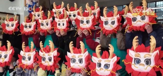 2月1日,在千人舞麒麟预热活动上,学生们戴着麒麟面具第一次亮相。 面具问题解决了,但杨文龙的心还在悬着。眼下,最要紧的就是各支队伍的排练。