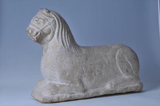 上世纪70年代出土于西夏陵陪葬墓的灰砂岩石马。(银川西夏陵区管理处供图)