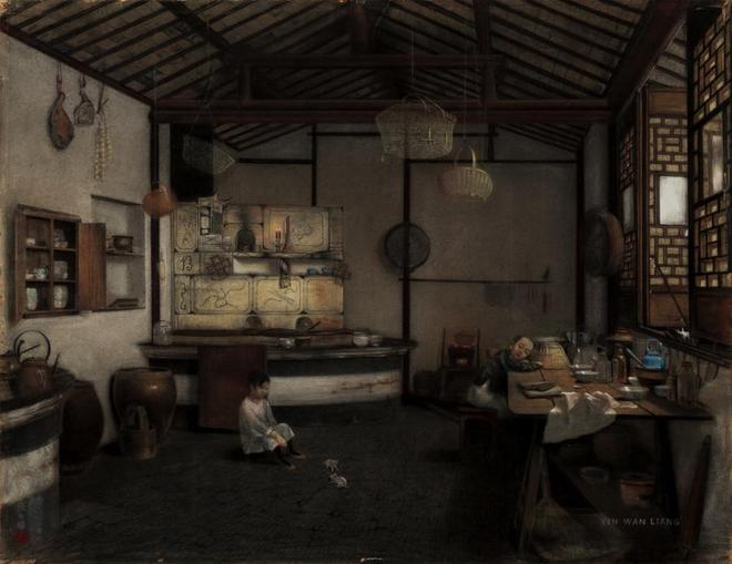 颜文樑的作品通常尺幅不大,笔触也较小,却分外耐人咀嚼。其成名作《厨房》描绘的是江南市民生活小景,融合了严谨的科学精神与深厚的人文情怀。《月夜》《石湖串月》《黄浦江夜航船》《印度洋夜航》等作品,则透出他对于捕捉夜色的痴迷。在他笔下,温暖的灯光与清冷的月光常常互为补色,交映成趣,整个画面充满诗的意味,让人产生一种超越现实的宁静与遐想。