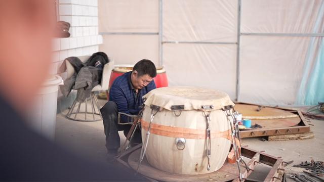 乌有才:”就是天天打,一年也打不坏,我做了这么多年鼓,没有一个回来换鼓面的。“