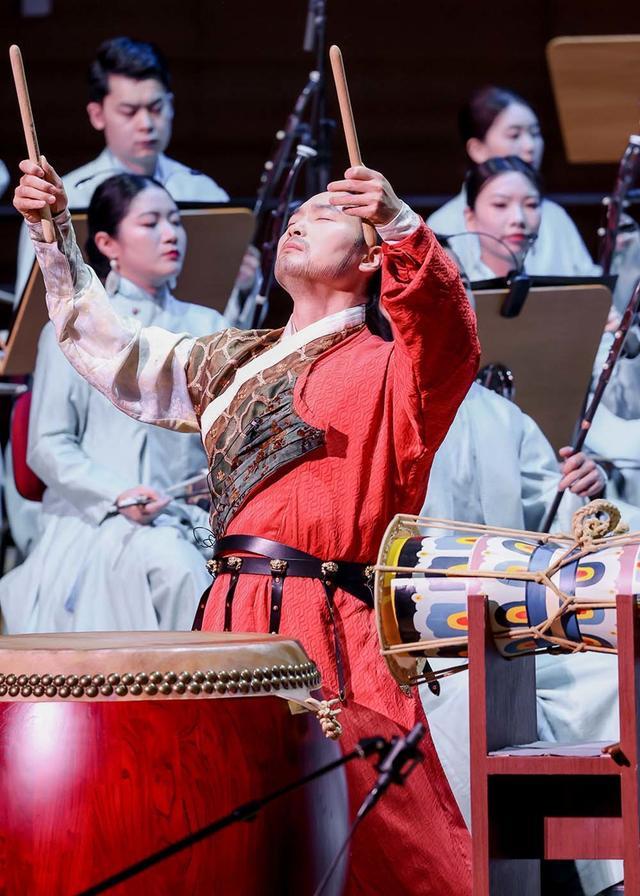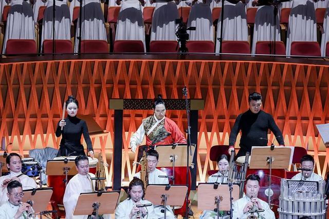 同时,作曲家通过声响组合的科学性与艺术性,为各篇章确立了器乐重奏、唢呐与乐队及打击乐、人声与乐队等不同主奏乐器与乐队组合的器乐体裁,凸显中国民族器乐丰富多元的音色组合与体裁样式。此番体裁拓展,让民族管弦乐具备了承载宏大文化命题的能力,使百人乐团成为古老文明的当代讲述者。