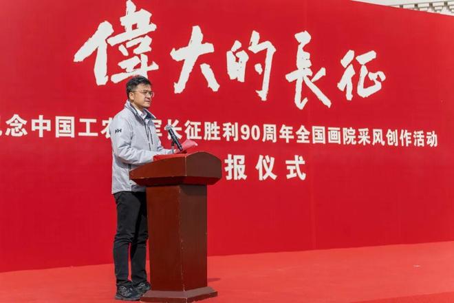 张华在发言中首先感谢中国国家画院搭建了珍贵的平台,让广大美术工作者有机会重走长征路,用画笔感受长征精神。他表示,此次随采风团写生,不仅是一次艺术创作,更是一次深刻的精神洗礼。通过踏访红色旧址、聆听英雄故事,艺术家们将长征中不怕困难、坚定信仰的精神刻在心里,积累了鲜活的创作素材。同时张华表示,陕西是红色沃土,延安更是革命圣地,本地画院更觉责任在肩。陕西国画院将以此次活动为新起点,把长征精神融入创作,组织画家创作有筋骨、有温度的红色作品。同时,画院将继续深入陕西各地红色阵地,通过常采风、多创作,深挖本土红色故事与文化底蕴,并加强研讨交流,确保创作扎根生活、紧跟时代。