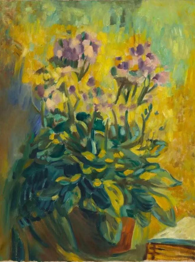 成为两人艺术交往最直接见证的,还有此次展出的吴大羽《西郊风景》与《花卉》。前一幅是1953年二人同游西郊荒芜园陵写生时吴大羽特意留赠张功慤的,作品背后有张功慤手写的“1953年在西郊荒芜园陵羽师写生”字样。后一幅是因1961年张功慤在菜市场买一盆花拜访恩师,吴大羽不久后便以此为原型创作《花卉》相赠张功慤。据2015年寿崇宁、李大钧编著的《吴大羽作品集》考证,吴大羽存世油画仅149件,极为珍稀。本次展览特别展出的三件张功慤家藏吴大羽上世纪五六十年代油画原作,尤其是大尺幅具象人物作品的发现,更填补吴大羽早期人物创作研究的空白,是理解其艺术语言演变的直接样本,具有极高的艺术价值与文献价值。