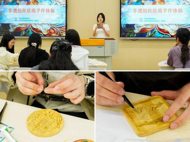 近日,四川大学锦江学院学生资助管理中心联合文学与传媒学院,在“一站式”学生社区连续举办非遗螺钿、掐丝珐琅、金箔画三场沉浸式手作体验活动,吸引百余名师生踊跃参与。