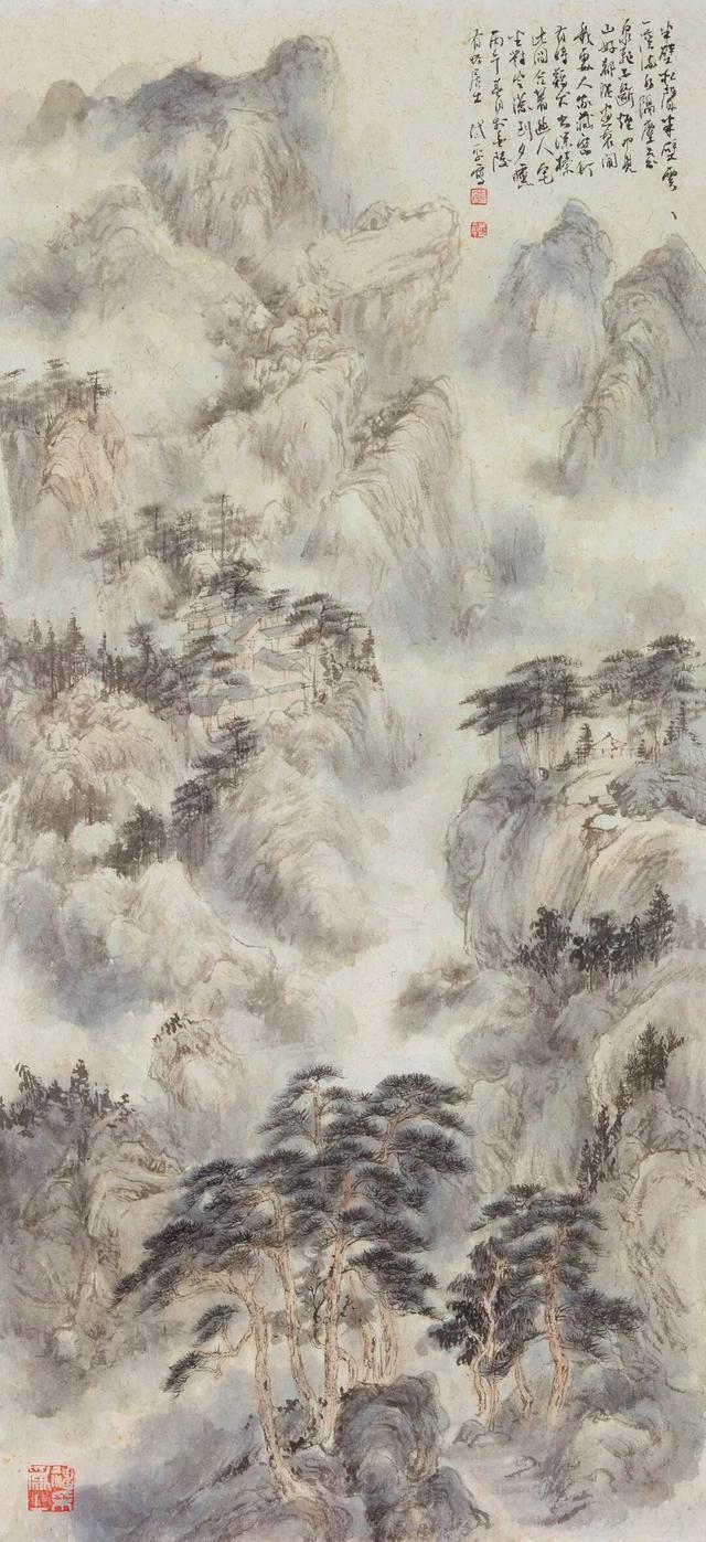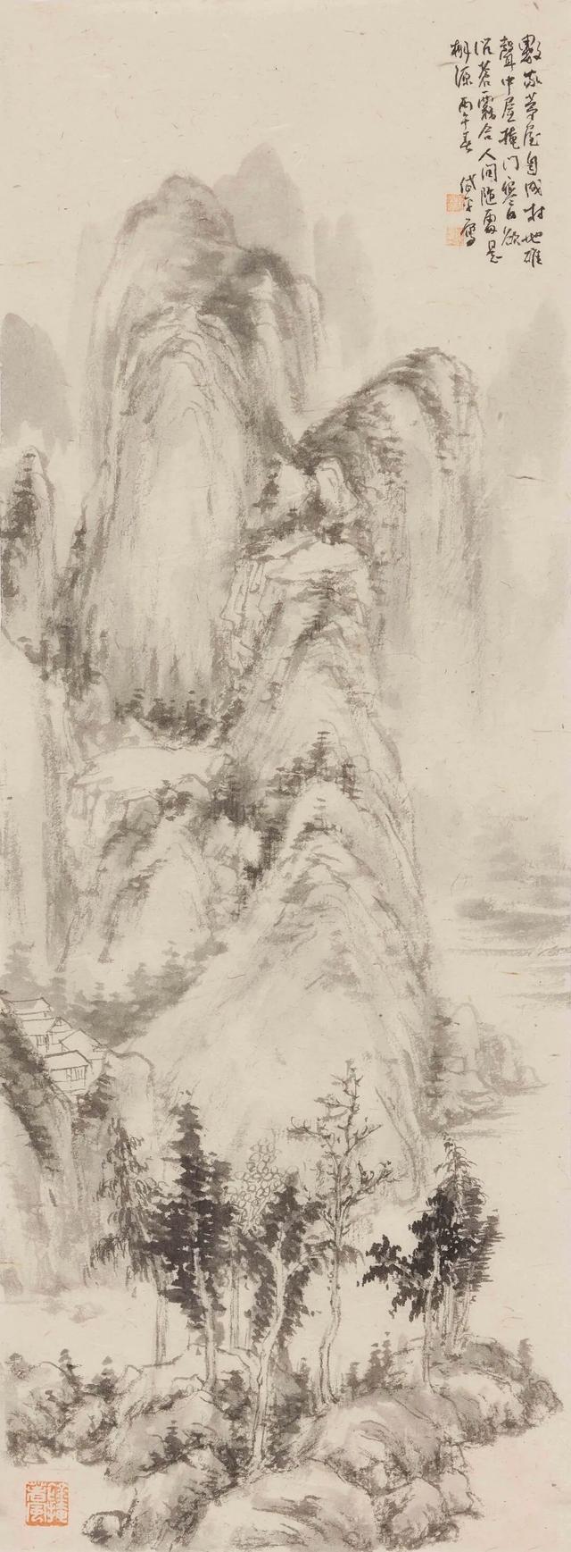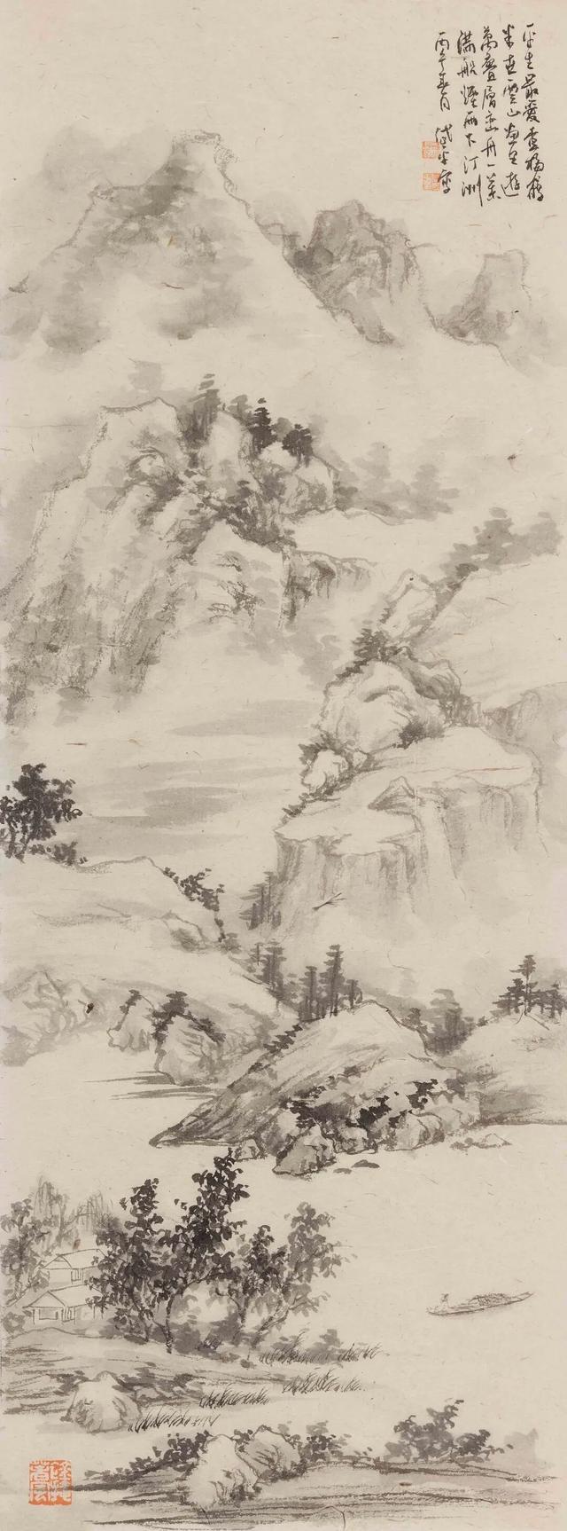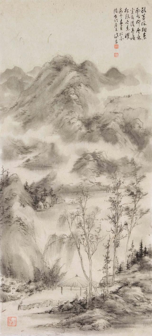 岱平的山水取法宋元,笔致清逸超拔,墨韵典雅绝尘,尽得古典文人画之精魂。其线条凝练而不枯涩,意境空灵而不荒疏,如清风盈怀,云烟在胸。他数十年深扎传统,对经典笔墨有着透彻颖悟和纯粹表达。他不逐浮华,不媚流俗,于皴擦点染中坚守中国画最本真的文气与笔墨意趣。