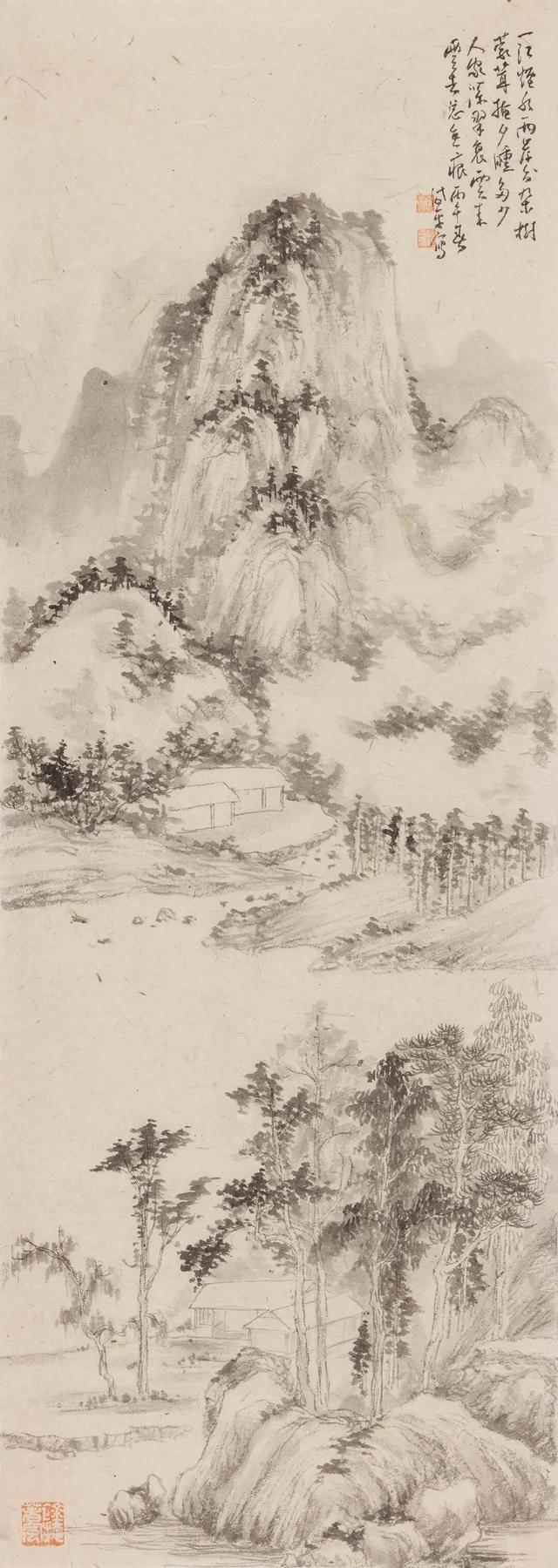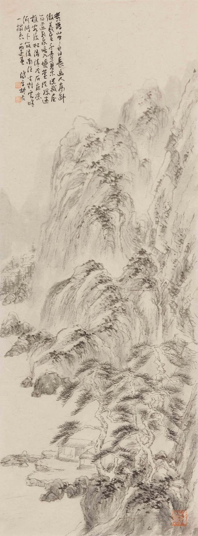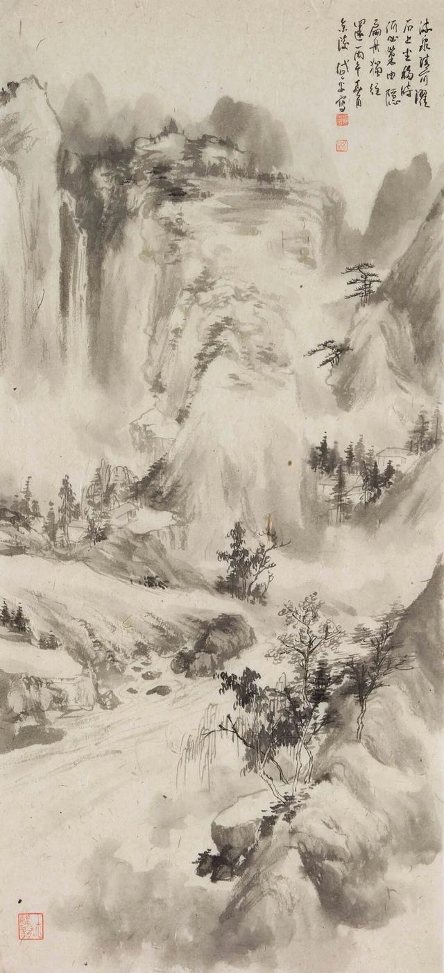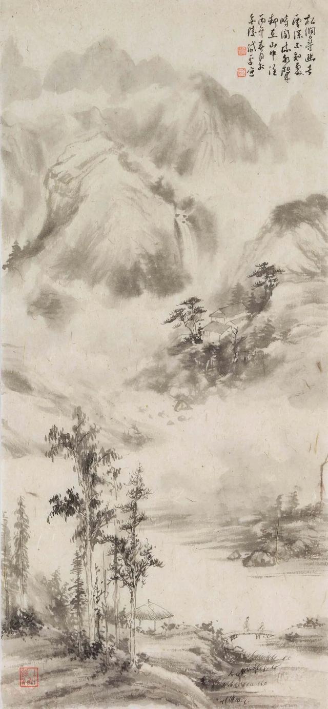 岱平的山水取法宋元,笔致清逸超拔,墨韵典雅绝尘,尽得古典文人画之精魂。其线条凝练而不枯涩,意境空灵而不荒疏,如清风盈怀,云烟在胸。他数十年深扎传统,对经典笔墨有着透彻颖悟和纯粹表达。他不逐浮华,不媚流俗,于皴擦点染中坚守中国画最本真的文气与笔墨意趣。