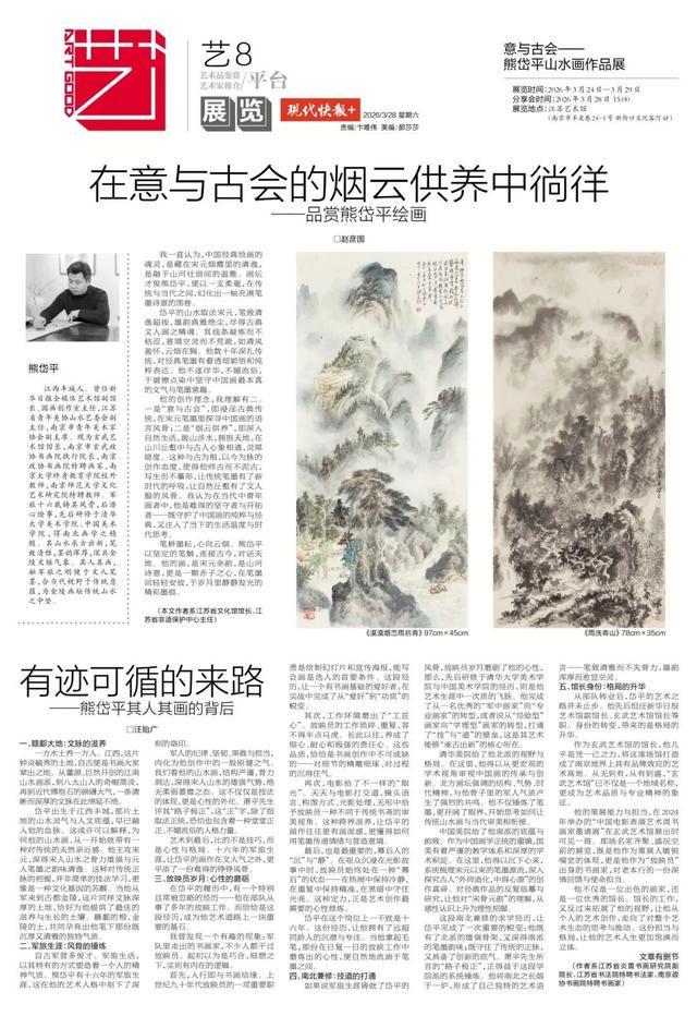 “意与古会——熊岱平山水画作品展”开展前四日,我在朋友圈写下这样一段话:“岱平兄笔下的山水,既有传统韵味,又见当代气象。万分期待!”彼时的期待,在亲临画展现场后,化为了更深的感慨与思索。