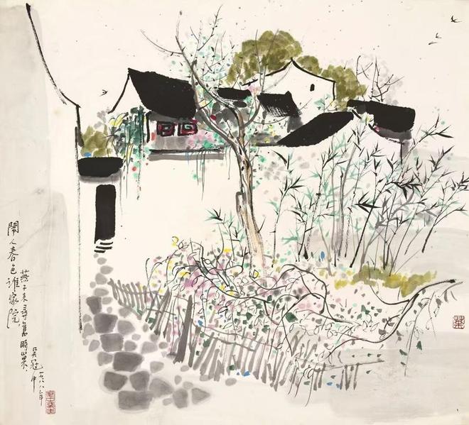 中国近现代书画板块,则以傅抱石金刚坡时期创作的《松涧听泉》领衔。据佳士得亚太区中国书画部资深专家谢飞透露,这件作品诞生于抗战时期的重庆,正是其艺术生涯的巅峰阶段,他将古人“荷叶皴”“拖泥带水皴”与“屋漏痕”等笔法融会贯通,自创出极具个人面貌的“抱石皴”,笔墨奔放灵动,在传统山水技法上实现了重要突破。画面中山石、林木与飞瀑流泉层次分明、意境悠远,由近及远的空间感极强,仿佛能让人听见山泉潺潺之声。预展现场,还云集了黄宾虹《多荫书屋图》、吴冠中《闹人春色谁家院》等。