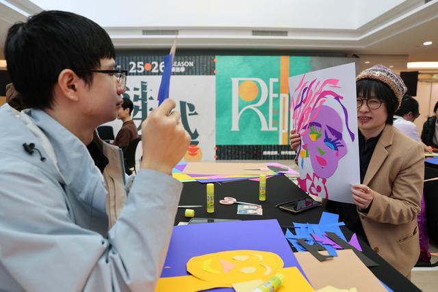 “创·灵感”工作坊人气满满。市民观众围坐在一起,用声音、肢体即兴表演,共同编织故事情节,现场笑声不断。有家长说:“和孩子一起创作、一起表演,不仅拉近了亲子关系,也让艺术变得轻松有趣。”戏剧疗愈工作坊内,市民通过文字拼贴、对话分享,在艺术表达中释放情绪、舒缓压力。