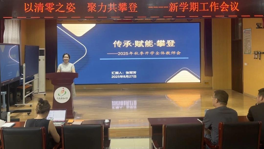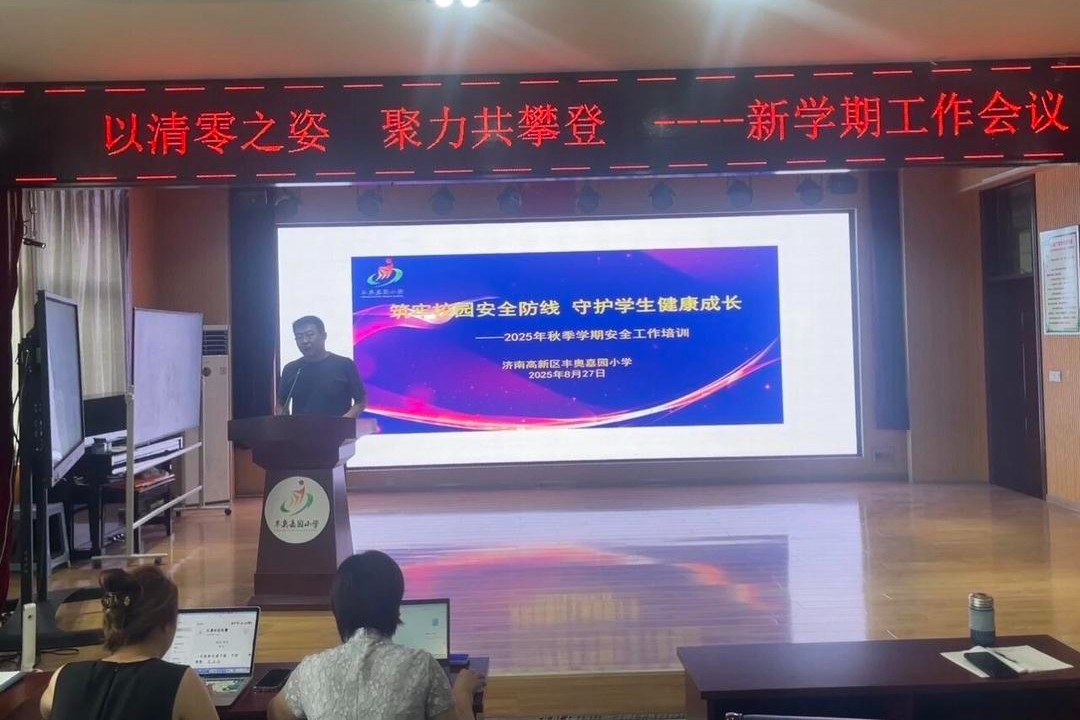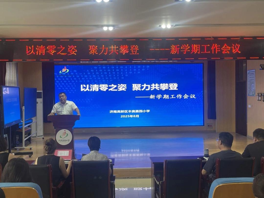 近日,济南高新区丰奥嘉园小学在多功能厅召开2025—2026学年新学期教师会。会议以 “以清零之姿 聚力共攀登” 为主题,旨在积极部署新学期教育教学工作,为推动教育教学质量持续提升凝聚合力。