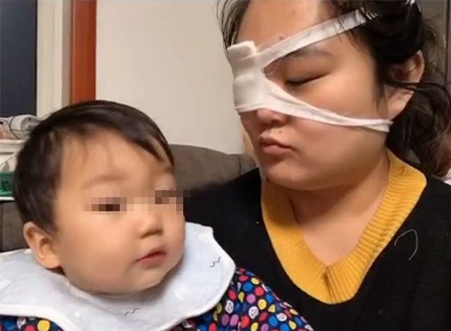 这位“独眼”妈妈,在网络上上发布了一个视频,并配文:我为你剖腹七层,你却让我变成“独眼”!“渣男”,但我依然爱你。