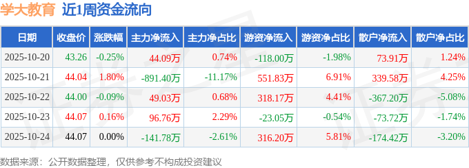 沪深股通持股方面,截止2025年10月24日收盘,学大教育深股通持股数为49.09万股,占流通股比为41.0%。