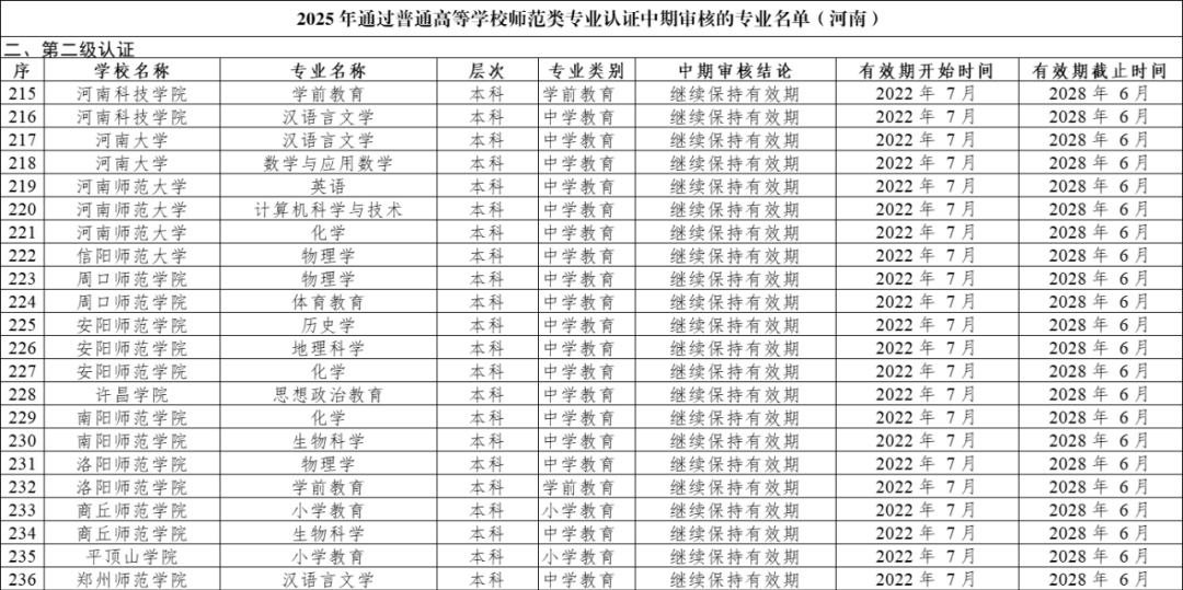 据统计,2025年共有287所高校通过师范类专业认证和中期审核,其中河南19所高校41个专业通过师范类专业认证、13所高校22个专业通过师范类专业认证中期审核。