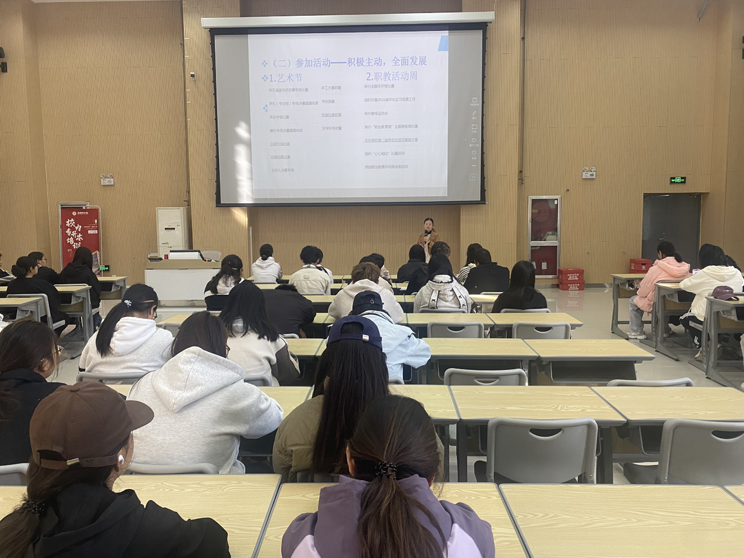 杜老师聚焦“人才培养方案解读”,围绕课程体系、实践教学、能力要求及毕业标准等方面展开细致讲解。她系统介绍了通识课程、专业基础课、技能实训及岗位实习之间的逻辑关联,强调“理论与实践并重、素养与技能共育”的培养特色。通过梳理三年学习的阶段性目标,为学生勾勒出清晰的专业成长路径,鼓励大家主动适应大学节奏,扎实掌握专业知识,全面提升综合能力,成为符合新时代要求的卓越幼教人才。