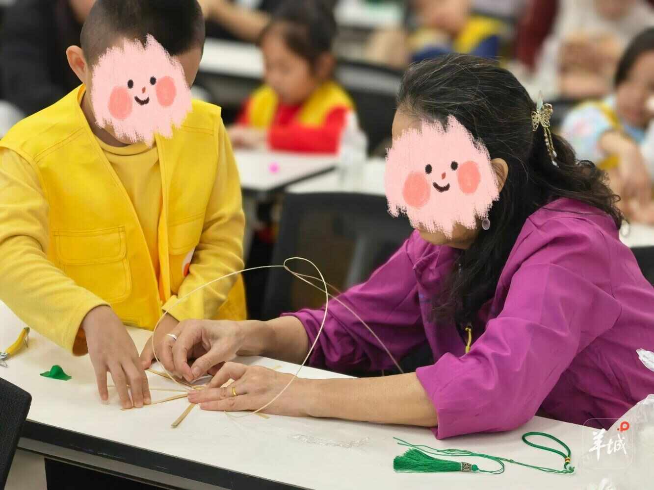 活动的第二站来到了非遗竹编手作体验课堂,竹编老师详细讲解了竹编的历史渊源、文化价值及基础编织技法,随后手把手指导大家动手创作。孩子们屏息凝神地穿、编、绕,家长们则在一旁耐心协助、默契配合,在指尖的协作中拉近了心灵距离。当一个个精致的竹编作品从手中诞生,孩子们的脸上满是成就感与自豪感。