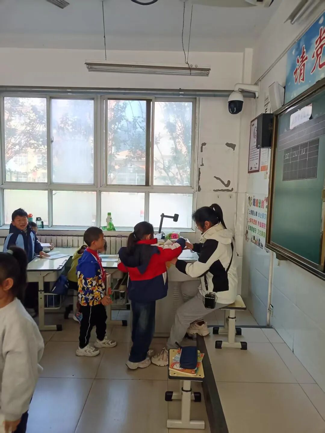我环顾这间充满童趣的教室。黑板上,陈老师亲手裁剪的苹果、石榴、梨等卡通拼音贴画排成整齐的队伍;教室后面的展示墙上,以“争做新时代好少年”为主题的书画作品构图精妙、积极向上,特别是精心设计的“闪闪发光的你”版块,一定能让每个孩子看到闪亮的自己……