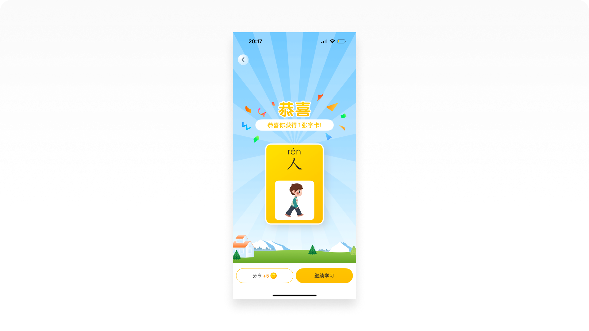 用户完成学习后,会收获该单词的字卡,并解锁下一个单词的学习。