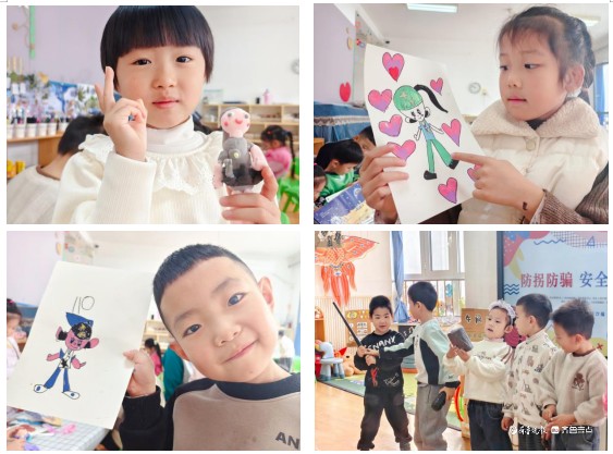 班主任潘老师表示:“这种沉浸式教育比单纯说教有效得多。孩子们全程专注力极高,活动后仍在讨论警察装备和安全知识。”她补充道,在美工区,有小朋友画下了警察阿姨的形象,还用彩泥制作了佩戴装备的警察模型。