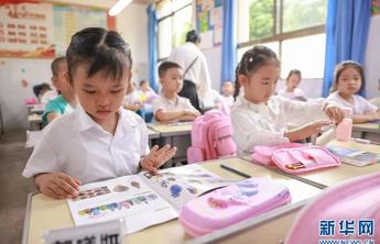 一年级新生翻开新课本阅读。新华网发(陶家淇 摄)