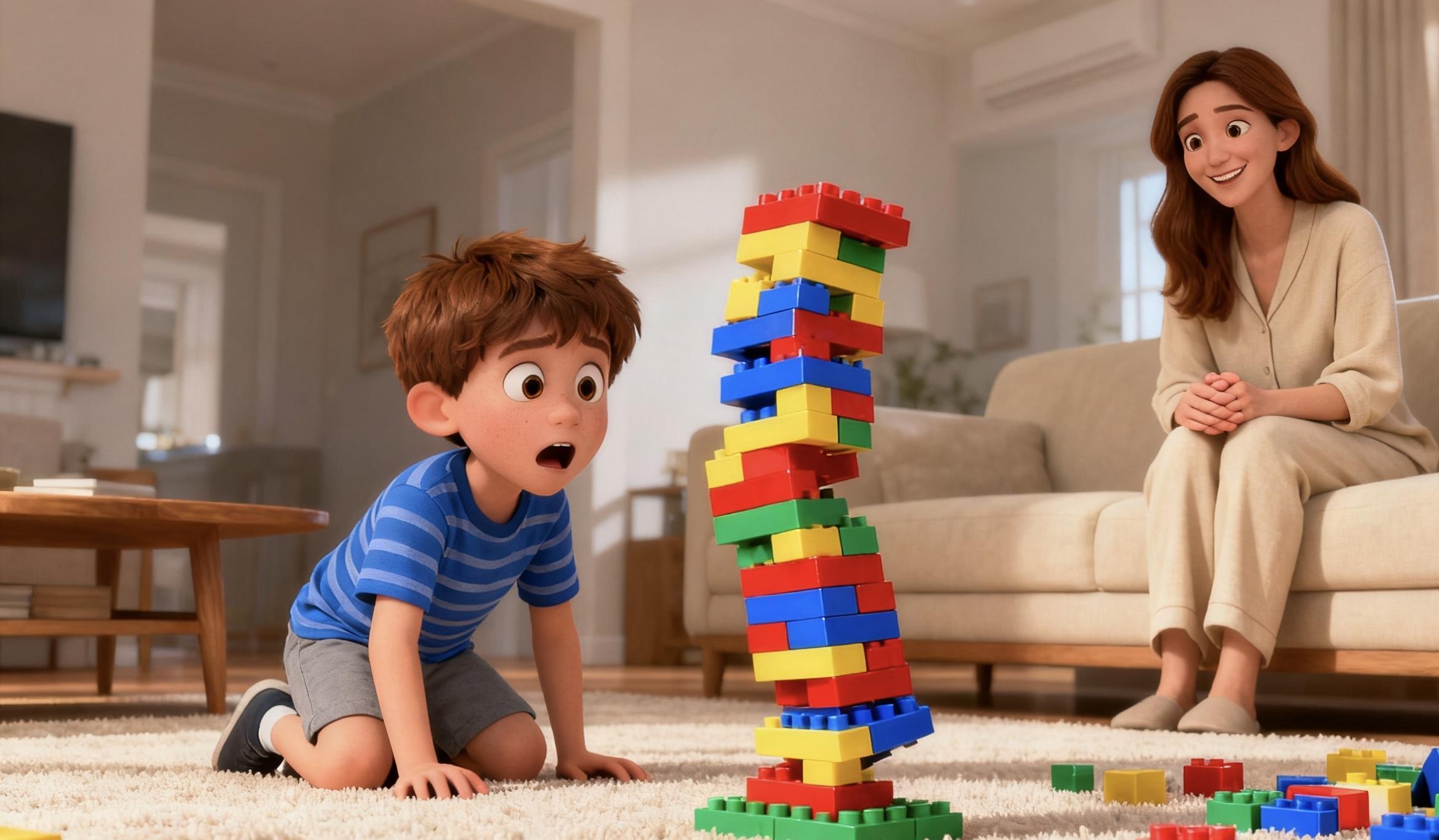 明知他用积木搭的塔会倒,也让他试。倒塌瞬间的“啊哦”,比一百次说教都管用。